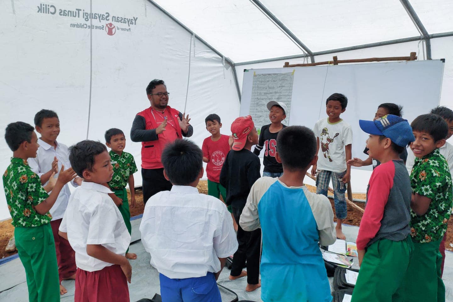 Tim tanggap bencana Save the Children juga mengadakan sesi dukungan psikososial terpadu bagi anak-anak pengungsi Desa Cipugur pada Rabu, 5 Februari. Ini menjadi salah satu cara untuk mendukung mereka beraktivitas kembali seperti normal di tengah situasi bencana.