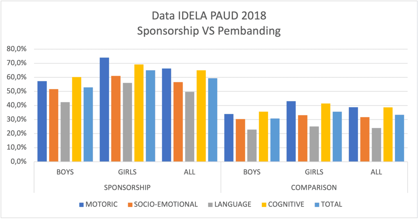 Pada tahun 2017 dan 2018, Save the Children Indonesia melakukan pengukuran terhadap perkembangan anak pada PAUD HI dengan menggunakan alat ukur IDELA (The International Development and Early Learning Assessment). Hasil IDELA ini menunjukkan rata-rata gain sebesar 30% perkembangan lebih baik pada anak PAUD/TK dengan layanan HI berbanding dengan PAUD/TK yang berjalan tanpa layanan HI, baik dari sisi kemampuan motorik, socio-emotional, kemampuan bahasa, dan kemampuan kognitifnya. Hal ini menunjukkan bahwa ketika anak-anak diberi dukungan yang komprehensif untuk pemenuhan hak dasarnya, anak dapat bertumbuh dan berkembang dengan potensi penuh yang dimilikinya.