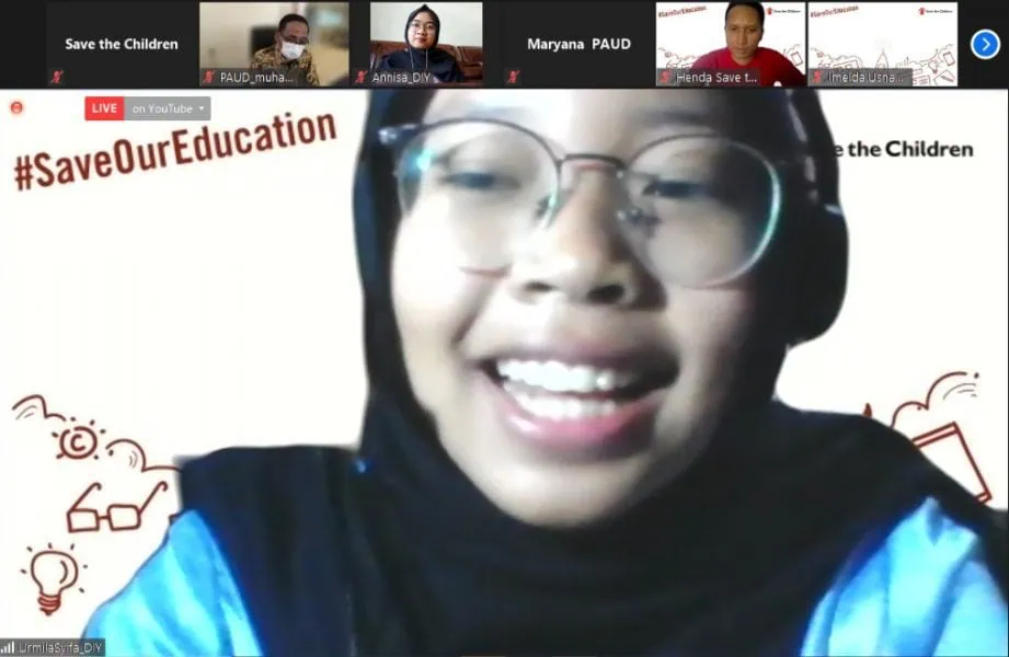JAKARTA, 2 Mei 2021 – Dalam rangka memperingati Hari Pendidikan Nasional (Hardiknas), Save the Children Indonesia menyelenggarakan Dialog Anak bersama Kementerian Pendidikan, Kebudayaan, Riset dan Teknologi Republik Indonesia (Kemendikbud-Ristek). Dialog ini bertujuan memberikan ruang yang ramah dan aman bagi anak untuk menyuarakan pengalaman dan tantangan selama pembelajaran jarak jauh, risiko yang dihadapi anak-anak, dan harapan anak terhadap pendidikan di Indonesia.