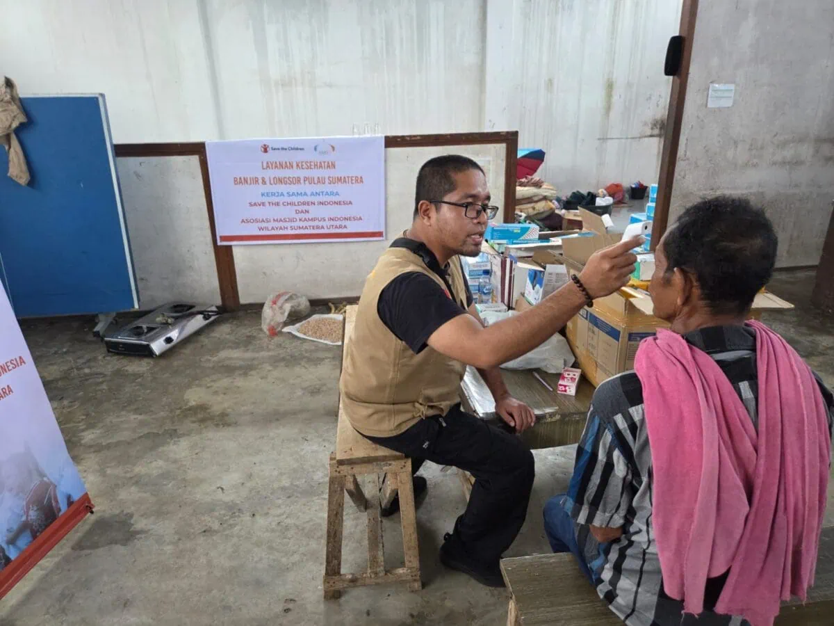 Pada 3 Desember, tim kesehatan Save the Children bersama dokter AMKI menjangkau Kuala Simpang melalui jalur darat dan memberikan layanan kesehatan dan pengobatan.